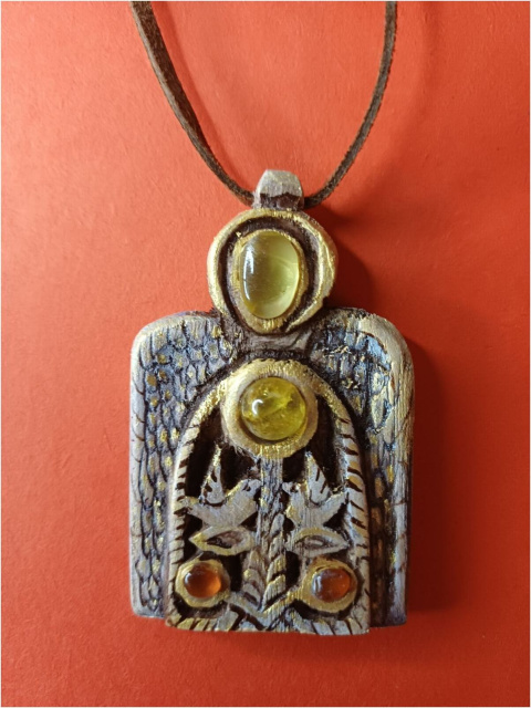 Защитный Оберег "АНГЕЛ-ОХРАНИТЕЛЬ»" представляет собой оберег размером 4 на 6 см, изготовленный из ореха – дерева победы над любыми внешними обстоятельствами. Ручная резьба.
